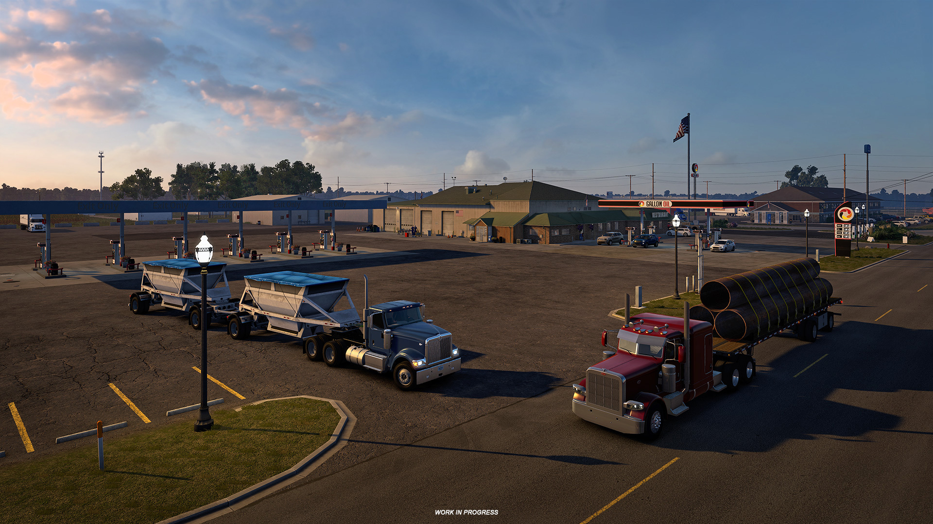 去年四月,SCS软件展示了一些卡车停靠站,该停靠站计划在伊利诺伊州扩展美国卡车模拟器,突出显示了所有将包含的休息区域作为即将到来的DLC的一部分。如今,从构成拉什维尔市的停靠点开始,揭幕了更多内容。