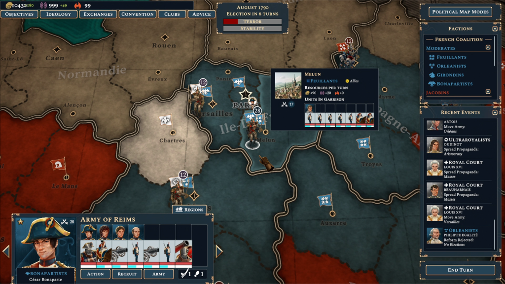 Grand Strategy Map(也基于转弯)允许玩家影响历史的过程,与法国大革命的主要参与者和事件互动。该游戏将具有真实的历史事件,但有可能通过决策来改变历史的历史进程。