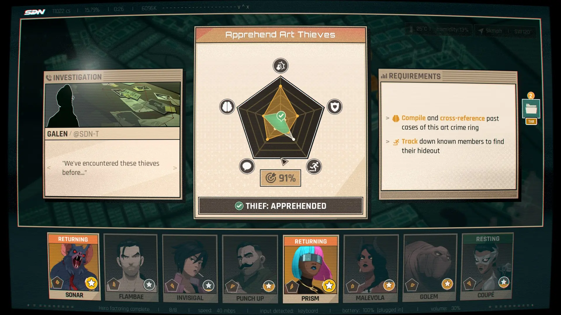 你的工作是操作计算机,检查传入的任务,然后派出合适的英雄或英雄组合来成功完成任务。您需要密切关注他们的统计数据并将其与工作描述相匹配,以确保合适的英雄出现在现场。例如,你可能需要派出一个团队来调查犯罪并确定嫌疑人,然后追捕他们,因此你需要具有智力和机动性的英雄组合。这些部分总是很有趣,并奖励良好的决策和英雄管理。成功的任务可以获得英雄积分,然后可以用来升级他们的技能或解锁新的能力,这里有令人惊讶的深度,它将这些部分从一个很好的消遣提升为体验的核心部分。
