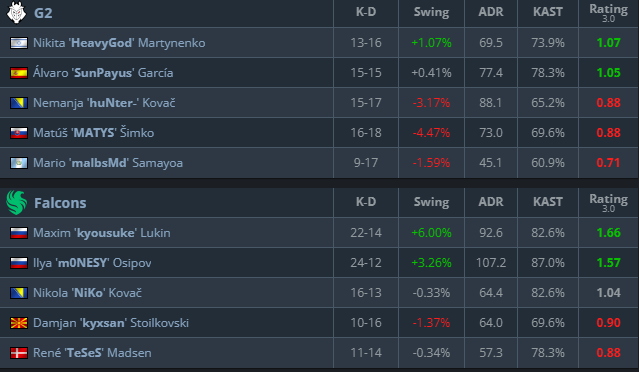 猎鹰队通过 AWP 和步枪设置之间的紧密协调找到了节奏 – 并且G2根本跟不上。
