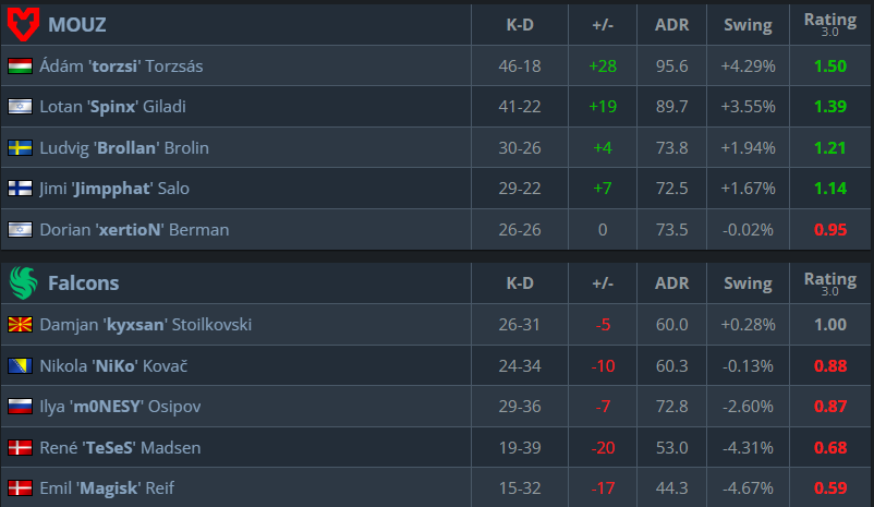 能猎鹰发送mouz回家并偷了另一个机会,从他们那里赢得比赛,还是会mouz保持自己作为世界第三好队的立场?我们将不得不看到它星期五在19:45 CET呢