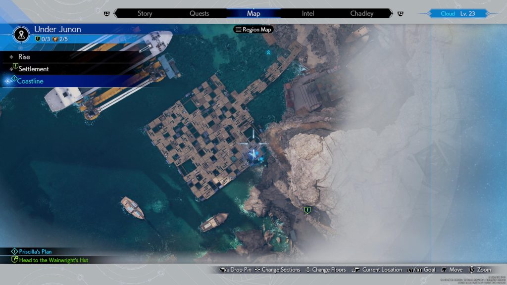 要到达青蛙沟渠,请将恒星降落在海龙广场上的码头,朝着您遇到Yuffie的码头,并沿着海岸线向南,直到到达通往青蛙沟渠的拱门。