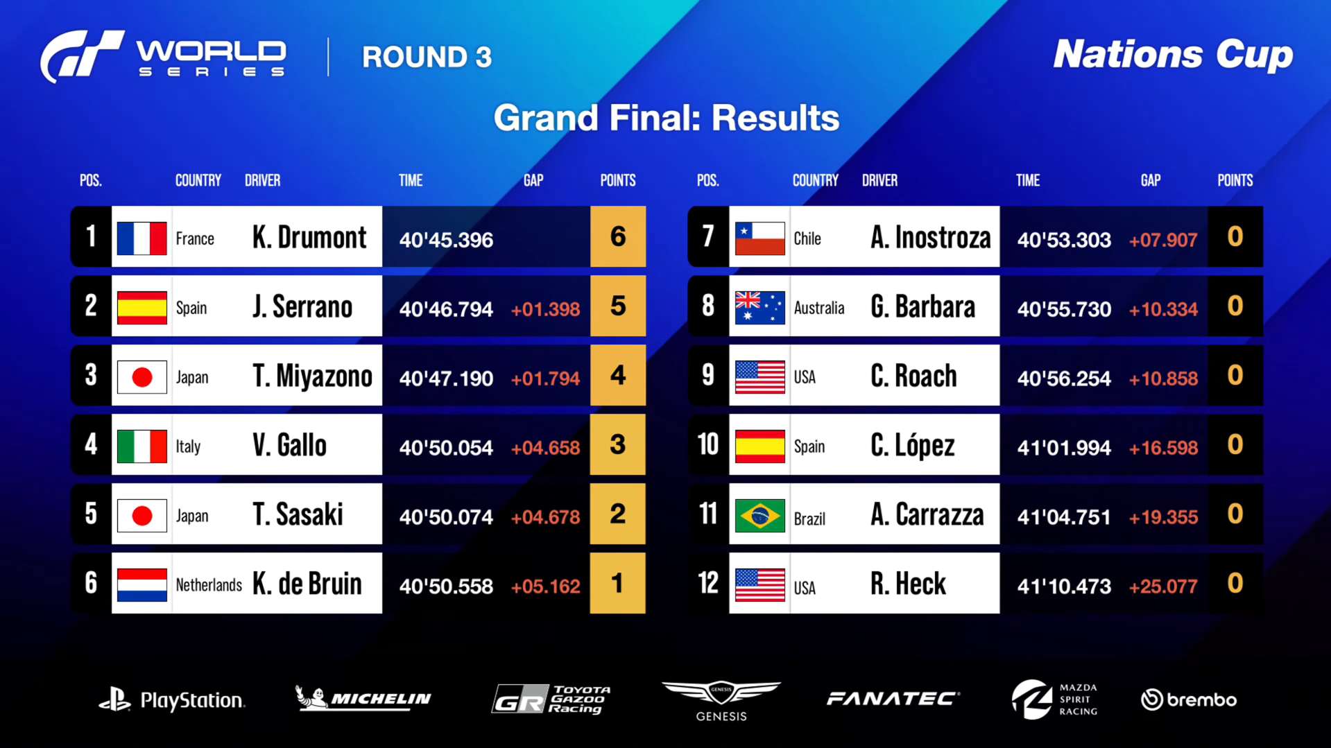 周日,所有人的目光都集中在国家杯上,法国人凯里安·德拉姆特(Kylian Drumont)在讲台上排名第一,其次是西班牙和日本宫田宫(Takuma Miyazono)的乔斯·塞拉诺(JoséSerrano)。