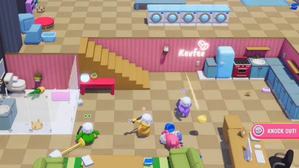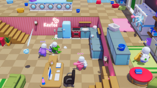 控制你的“凯文”(他们被称为“凯文”)非常简单。 The triggers control your vacuum, one sucks up whatever objects you can find to use as ammo, and the other launches whatever you've acquired in the direction you're facing. Movement and direction are handled similar to a twin stick shooter, with the left joystick used for all movement, and the right for aiming and facing whichever way you want.跳跃只需按一下按钮即可控制。
