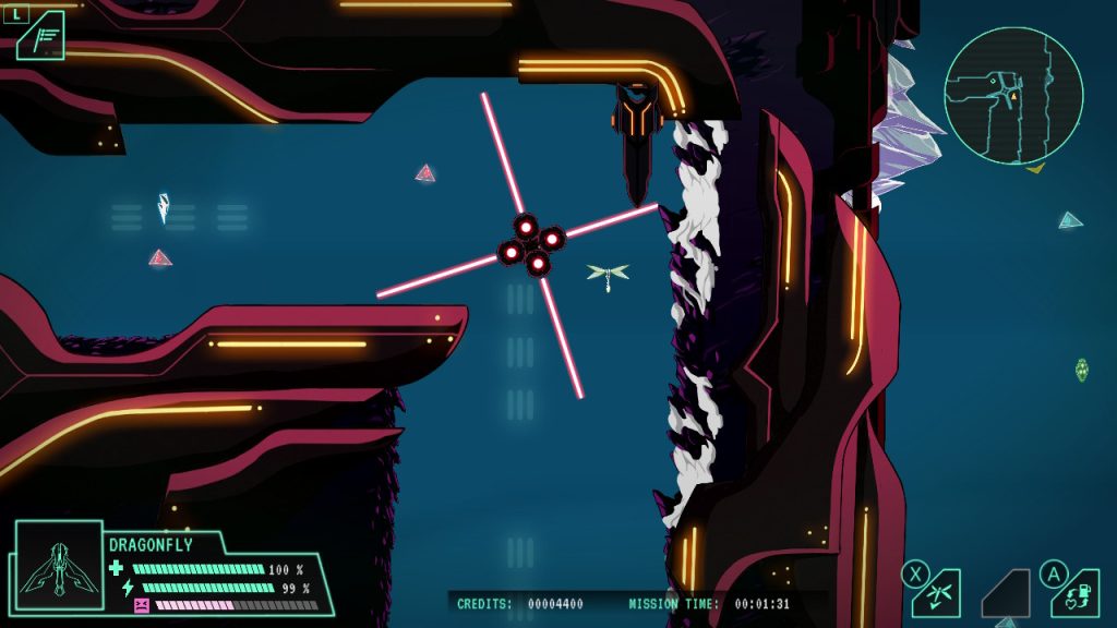 尽管这是一场坚实的科幻冒险,但有一些因素阻碍了它的发展。我已经在某种程度上谈到了游戏的挑战,以及经常出乎意料的难度峰值。但也许我最大的抱怨是通常很难区分舞台几何形状和背景。这在早期任务中并不是什么大问题,但在游戏后期,我经常不小心让我的蜻蜓撞到东西上,尤其是在最后一个星球上,那里也充满了可怕的怪物。