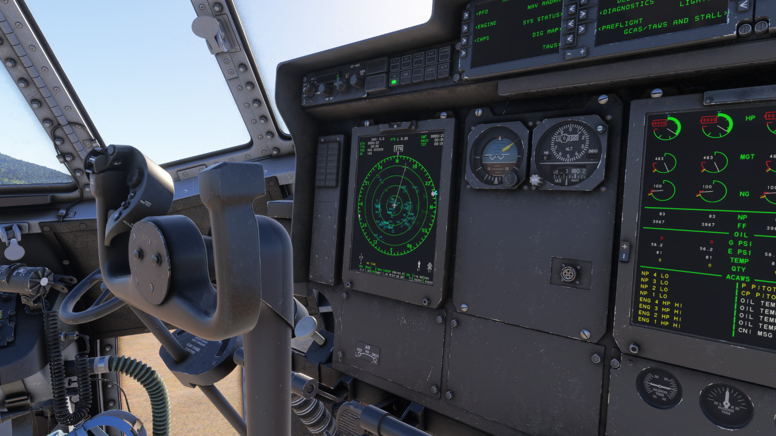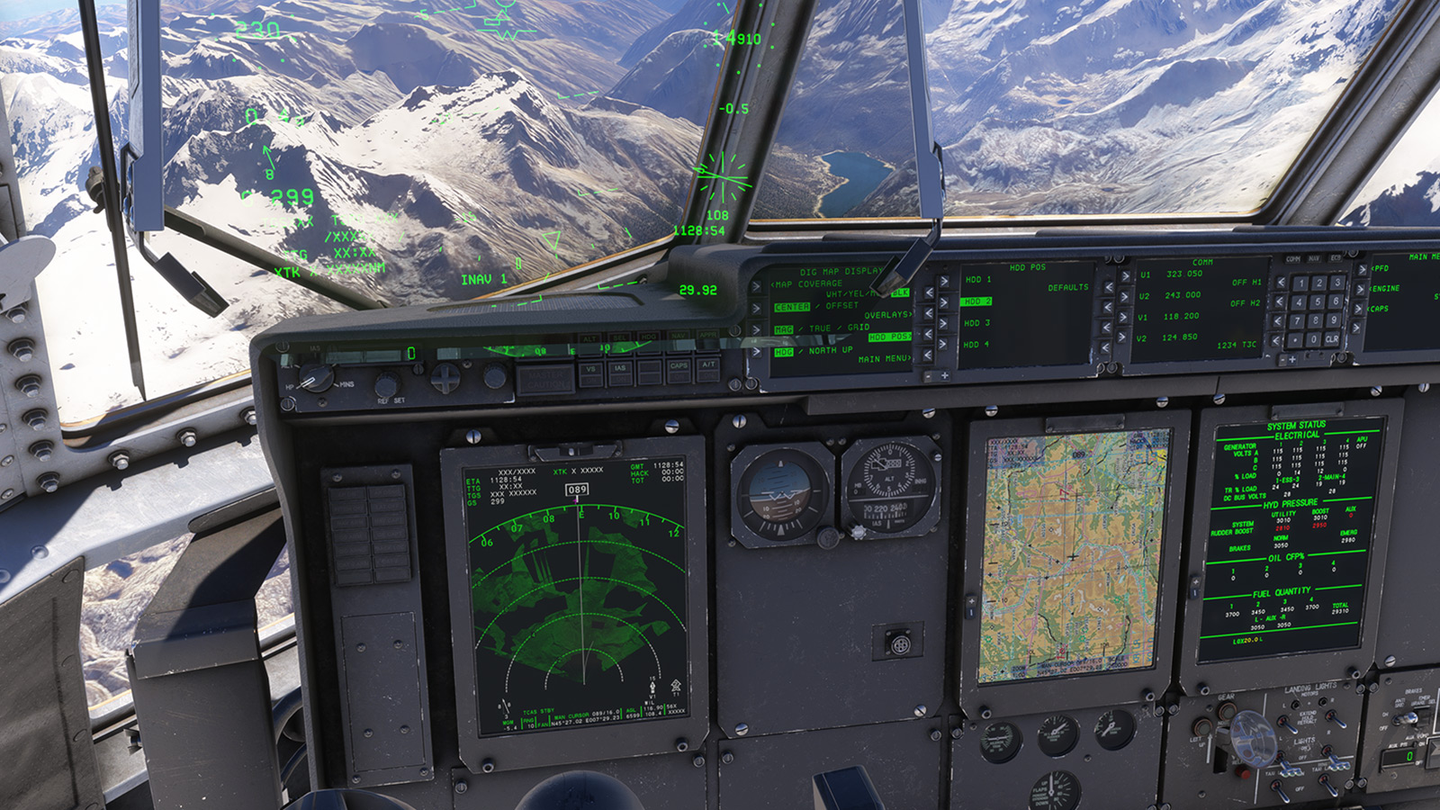 - 高度复杂的雷达系统,包括带有地形阴影,横梁宽度和倾斜,偏移,扩展,冻结等的地面映射,以及空对空(皮肤油漆)和天气模式