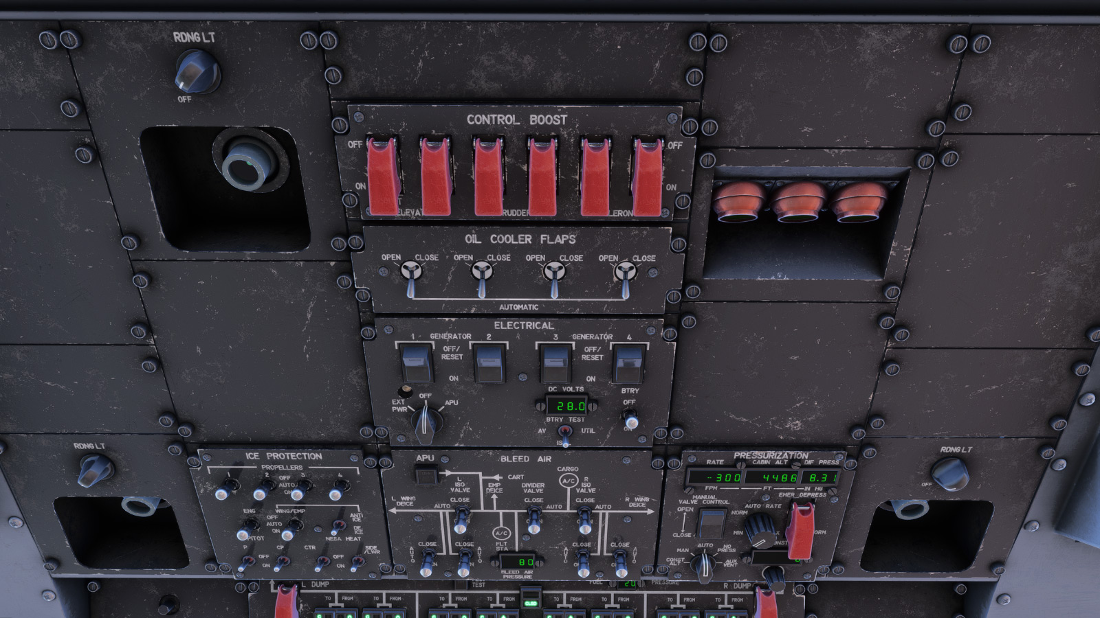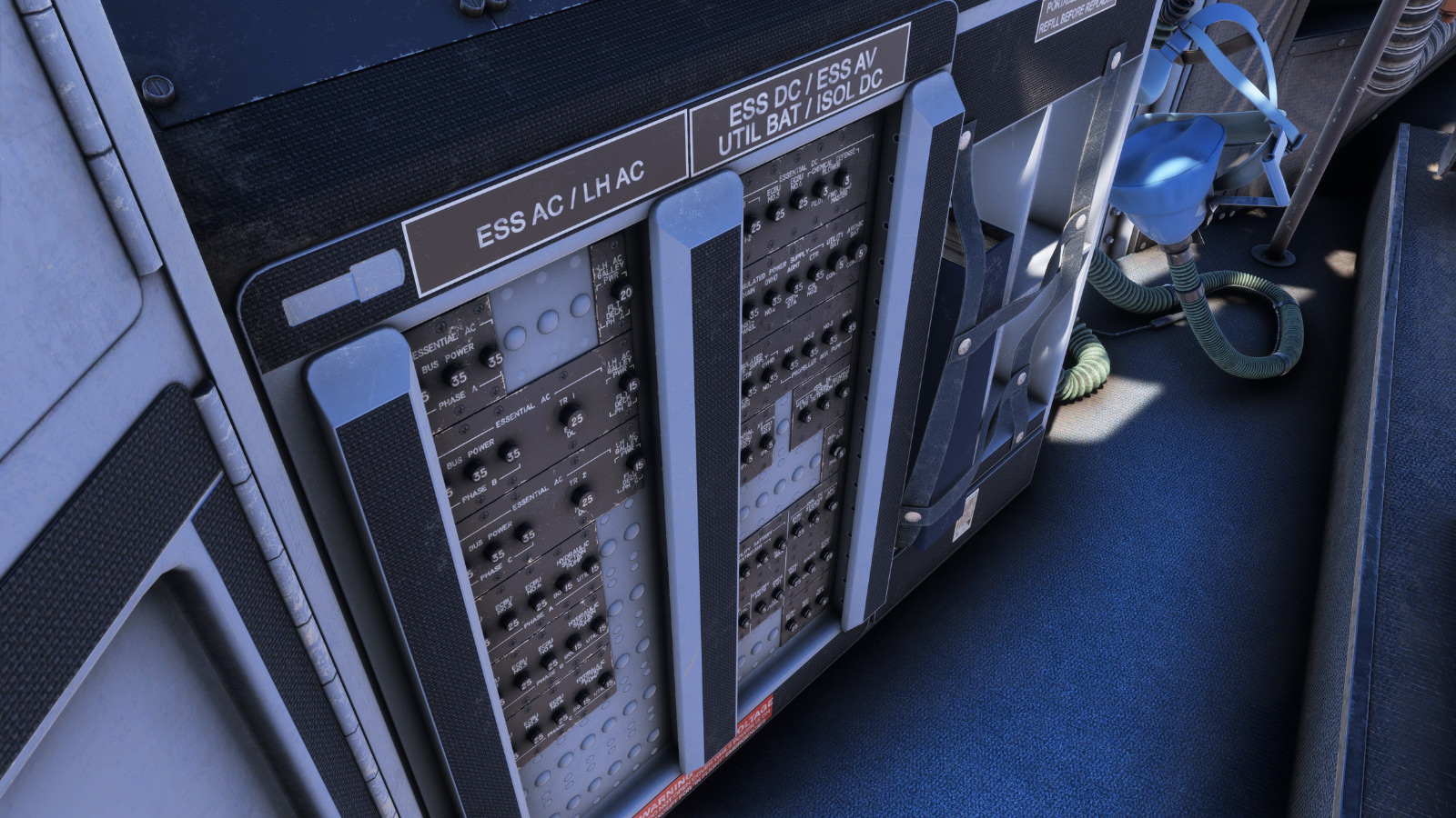 - 超过120个完全工作的手动断路器(MCB)可在驾驶舱中访问