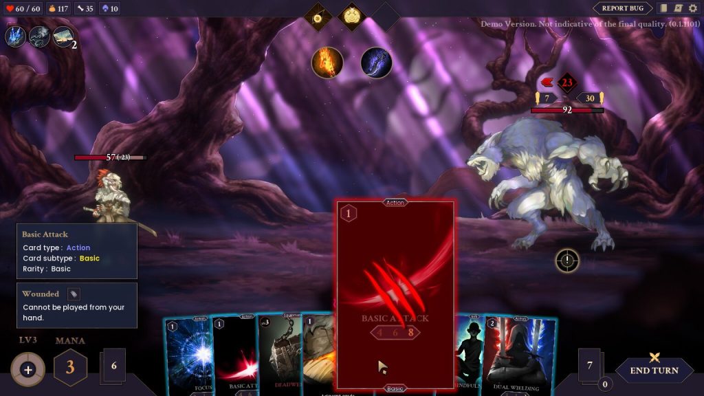 虽然它是真正的西北仍在开发中,但现在在Steam上可用的演示实际上非常健壮,尽管目前只有一个可玩的角色,即斗士。他使用剑和其他设备进行战斗,并从一个强大的遗物开始,确保他以至少一个法力开始每回合。这非常好,因为您将获得的大多数其他法力都取决于绘制焦点卡。好消息是,您将保留法力,直到花费它为止。坏消息是,您不仅需要花费法术力来激活其他卡片。您还需要它才能升级。