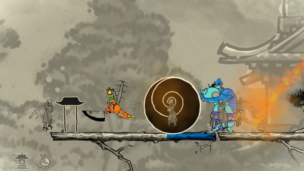 立即引起我注意游戏的一件事是日本水彩艺术风格。即使它只使用了几种颜色,它也很漂亮,这是我决定尝试演示的重要原因。然后,我和我的舞池乐队竭尽全力赢得我们的胜利。游戏中有3种不同的胜利条件。首先,您可以多次击败另一支球队的Shogun;或者,您可以将球体放在足够的神社上;或者拿我最喜欢的,跳上一只巨大的粪便甲虫,将大便球推到胜利线上。
