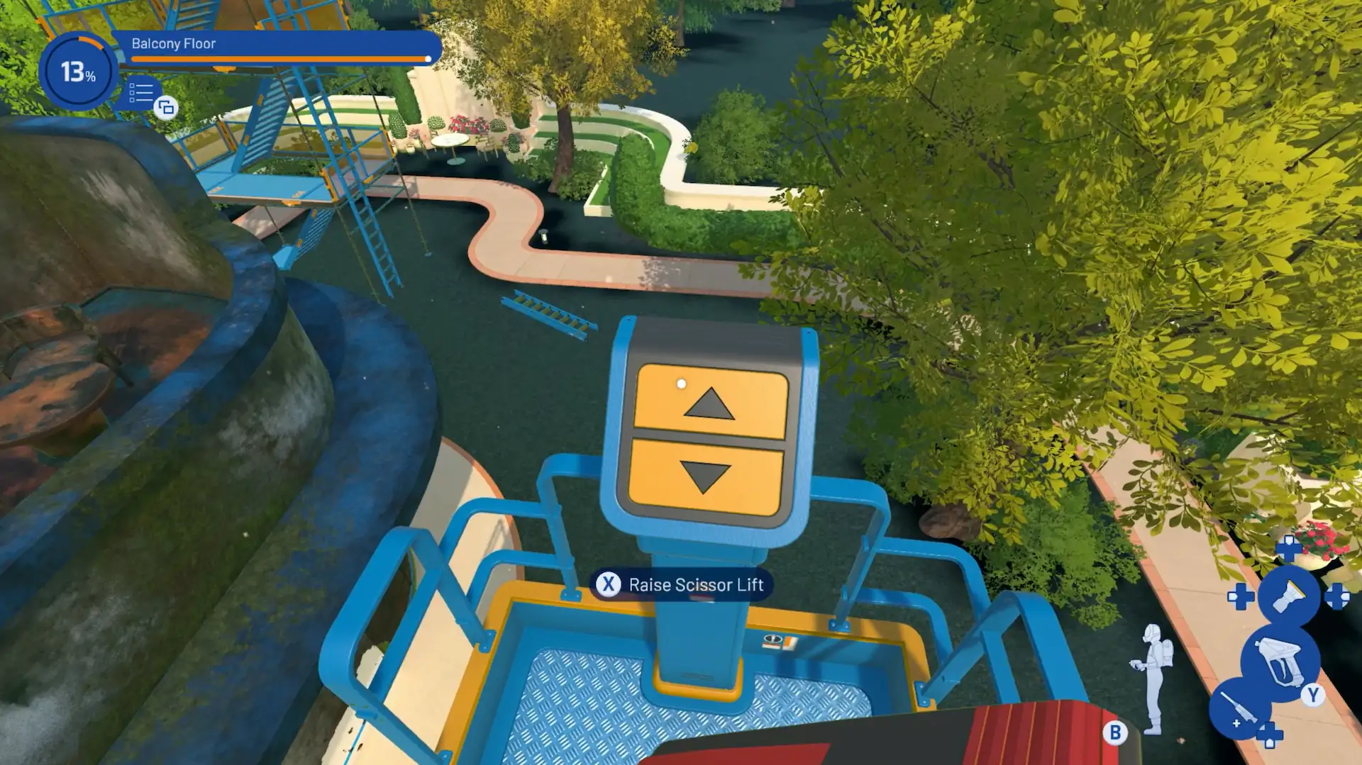 你很幸运地拥有了新的工具来绕过关卡并达到最高点。脚手架又回归了,但它的用途更加广泛,梯子在两侧延伸,确保它在几乎每个大级别中都有价值。绕绳下降设备是新增设备,可帮助您更轻松地在高处水平和垂直移动,而剪刀式升降机则完善了您的武器库。这些有点有用,尽管大多数时候我更喜欢在关卡周围跑酷、跳上墙壁或跳下脚手架以到达难以到达的位置的久经考验的方法。