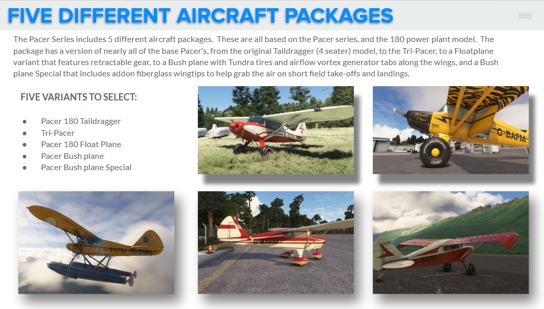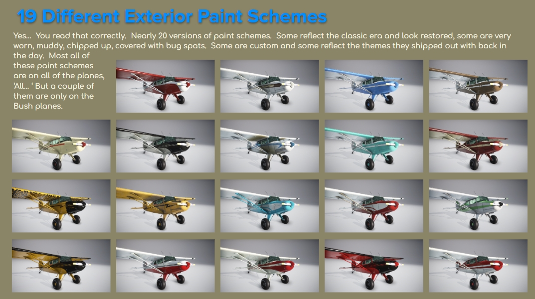 它将包括 5 种变体:taildragger、Tri-Pacer、2 个灌木版本和水上飞机。还将包括 2 个面板版本和 19 个涂装。
