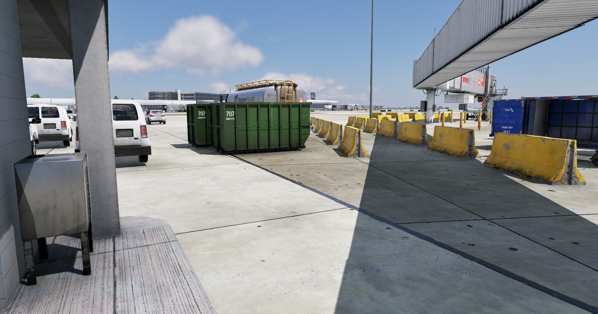 陆地地区也在迅速发展。停车区正在分层和纹理上,并用各种表面 - 沥青,混凝土,铺路块和污垢/风化叠加层。这些微妙的细节增加了深度和真实性,确保了机场的每个平方米都忠于生活。仔细融合颜色和纹理使表面之间的过渡无缝和逼真。