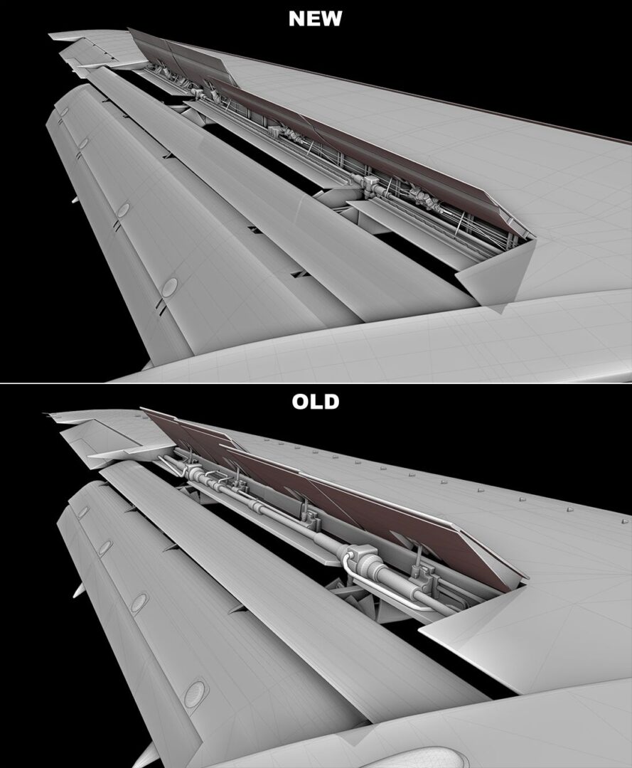 新的机翼模型还远未完成,但看起来已经相当令人印象深刻了。我们确保了正确的机翼轮廓、适当的控制面比例和建模的复杂细节,所有这些都使新模型真正逼真。
