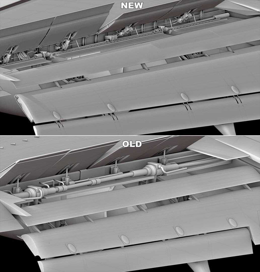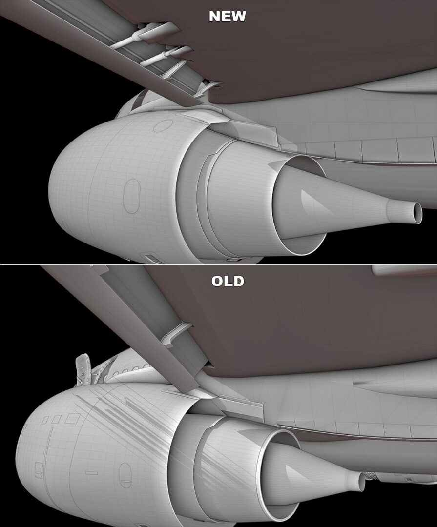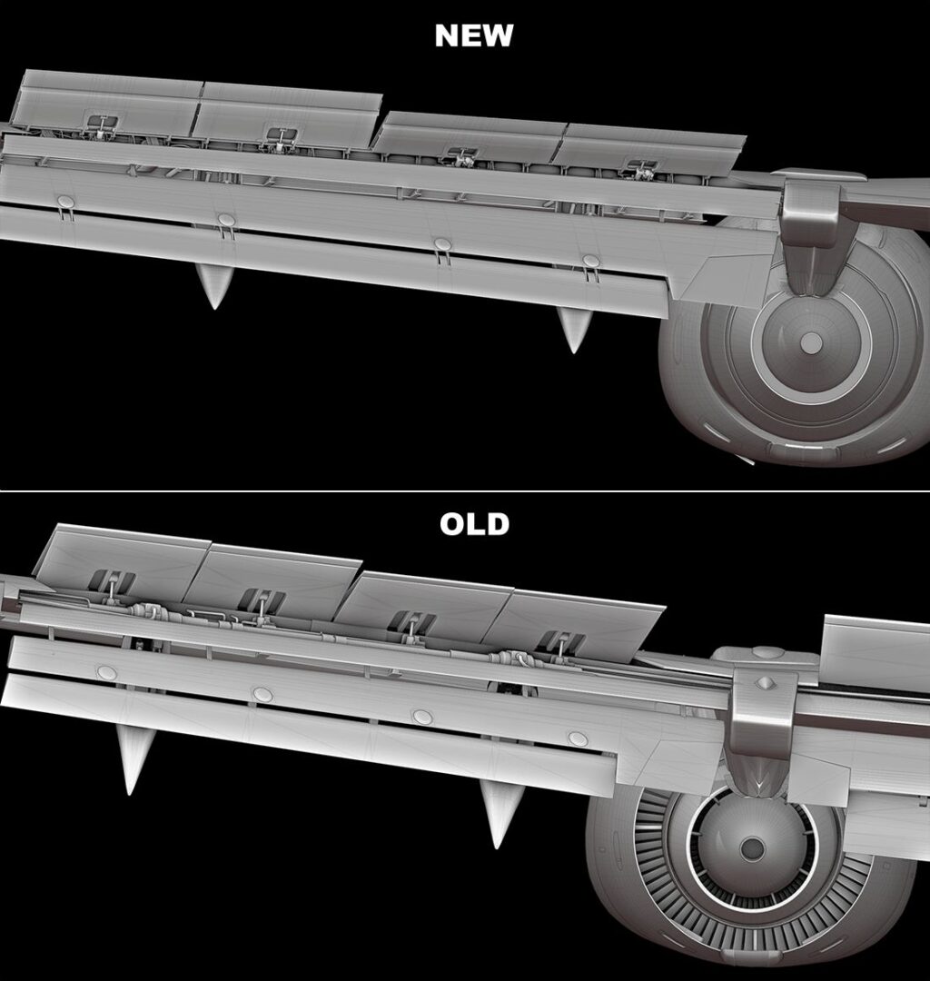 我们在之前的一些帖子中向您展示了稳定器,但今天我们想重点介绍与当前型号的比较。密切注意间隙密封件 - 升降舵和方向舵上的灰色空气动力学盖 - 这些现在也已正确建模。