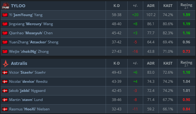 经验显然是在开始阿斯特拉斯的方面,由于他们是一支欧洲球队,在对抗更好的球队的比赛中有更多的经验,而且他们有一个主要的赢家'设备'。tyloo另一方面,在没有主要球员的情况下,这已经使之成为现实,现在他们应该有更多的动力。另外,他们赢得了比赛星座在小组阶段,这表明他们是更好的团队。我们会说这场比赛是55-45赞成tyloo。我们期望Tyloo赢得胜利这场比赛。
