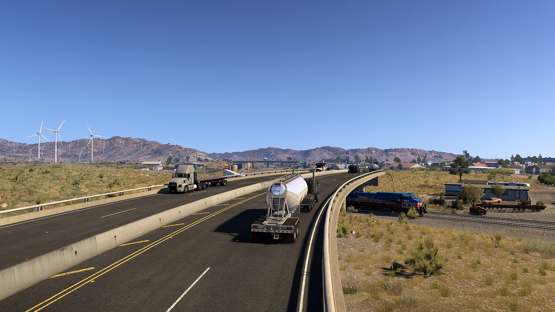 那些擁有特殊運輸DLC的人可以在洛杉磯和聖地亞哥之間的加利福尼亞州享受一條新路線,而速度限制則提高到55英里 /小時。