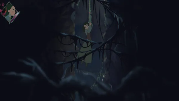 這是哪裡再見甜蜜的卡羅爾閃耀最亮。手繪 2D 藝術令人嘆為觀止,讓人想起 Don Bluth 等經典作品的風格NIMH 的秘密和時間之前的土地。每一幀看起來都像是從動畫電影中提取出來的。雖然有一些粗糙的過渡或稍微尷尬的動畫,但它們很少見,並且永遠不會分散演示文稿的整體美感。
