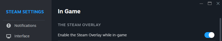 - 蒸汽覆蓋:Steam → 設置 → 遊戲內 → 取消選中覆蓋