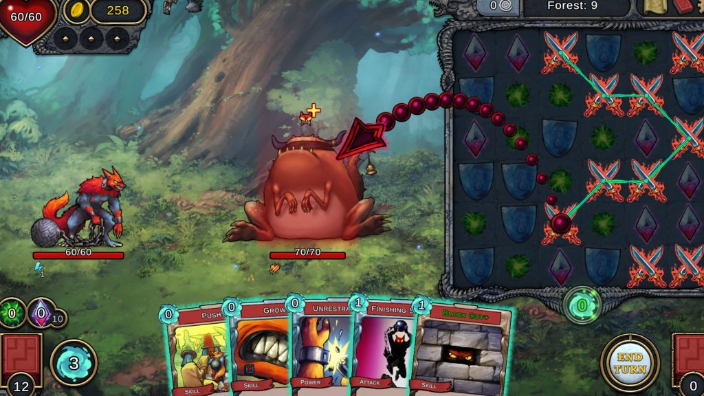 至於卡牌,它們看起來屬於三個類別——技能、攻擊和力量。遊戲中將有 200 多張卡牌(分佈在三個角色之間,加上中性卡牌),因此您始終有很多選擇來定制不斷增長的牌組。除了傷害敵人之外,卡牌還可以幫助你操縱棋盤,從而形成更強更深的鎖鏈。還有另一件事需要跟踪,即敵人圖塊。他們會在棋盤上佈滿這些令人討厭的東西,經過一定的回合後,他們會猛烈地攻擊你。值得慶幸的是,您可以在自己的鏈條中使用它們,因為它們是通用的白色瓷磚,這樣做可以減少它們激活後造成的傷害。