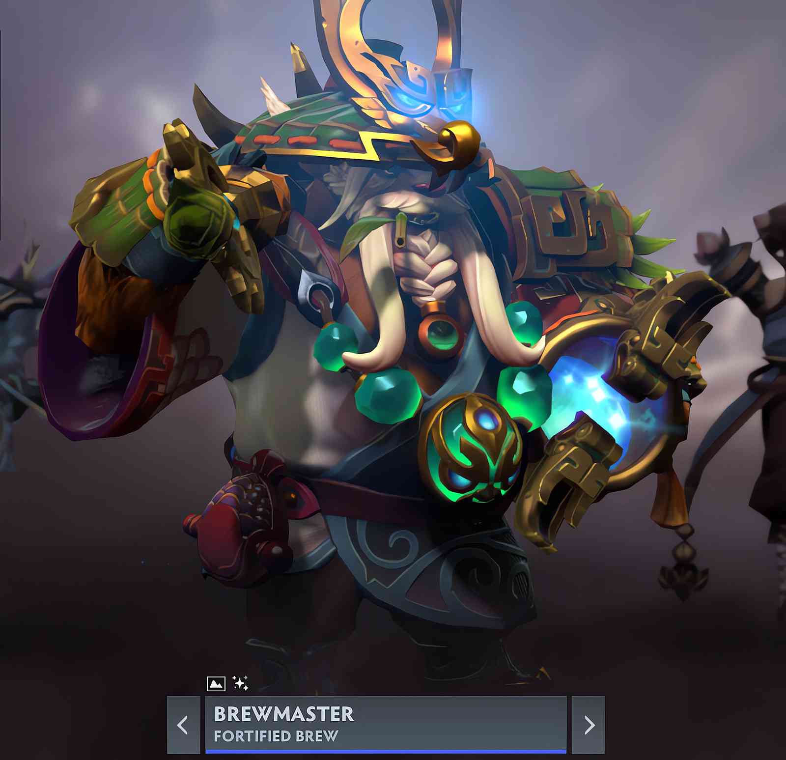酒仙看起來像是出去打獵了。金色的面具和藍色發光的眼睛看起來好戰。總的來說,這款皮膚有很多綠色和金色的顏色以及明亮燦爛的細節,與《龍之寶藏》中的許多其他皮膚區分開來。