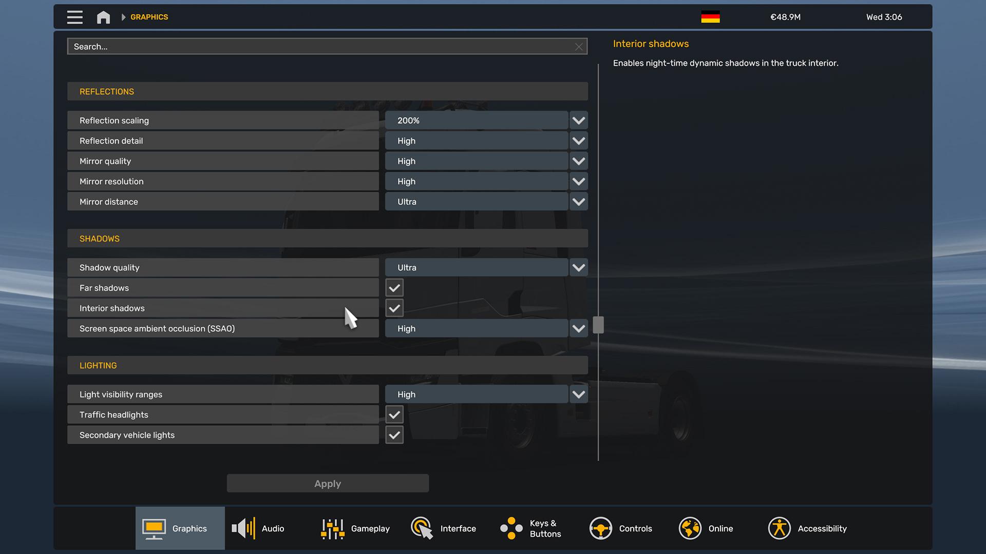 通過新的機艙陰影改善,晚上開車也會更好。卡車的內部陰影具有內部陰影調整器。這可以調整車輛外部的光線與機艙的相互作用,從而使其看起來更現實。