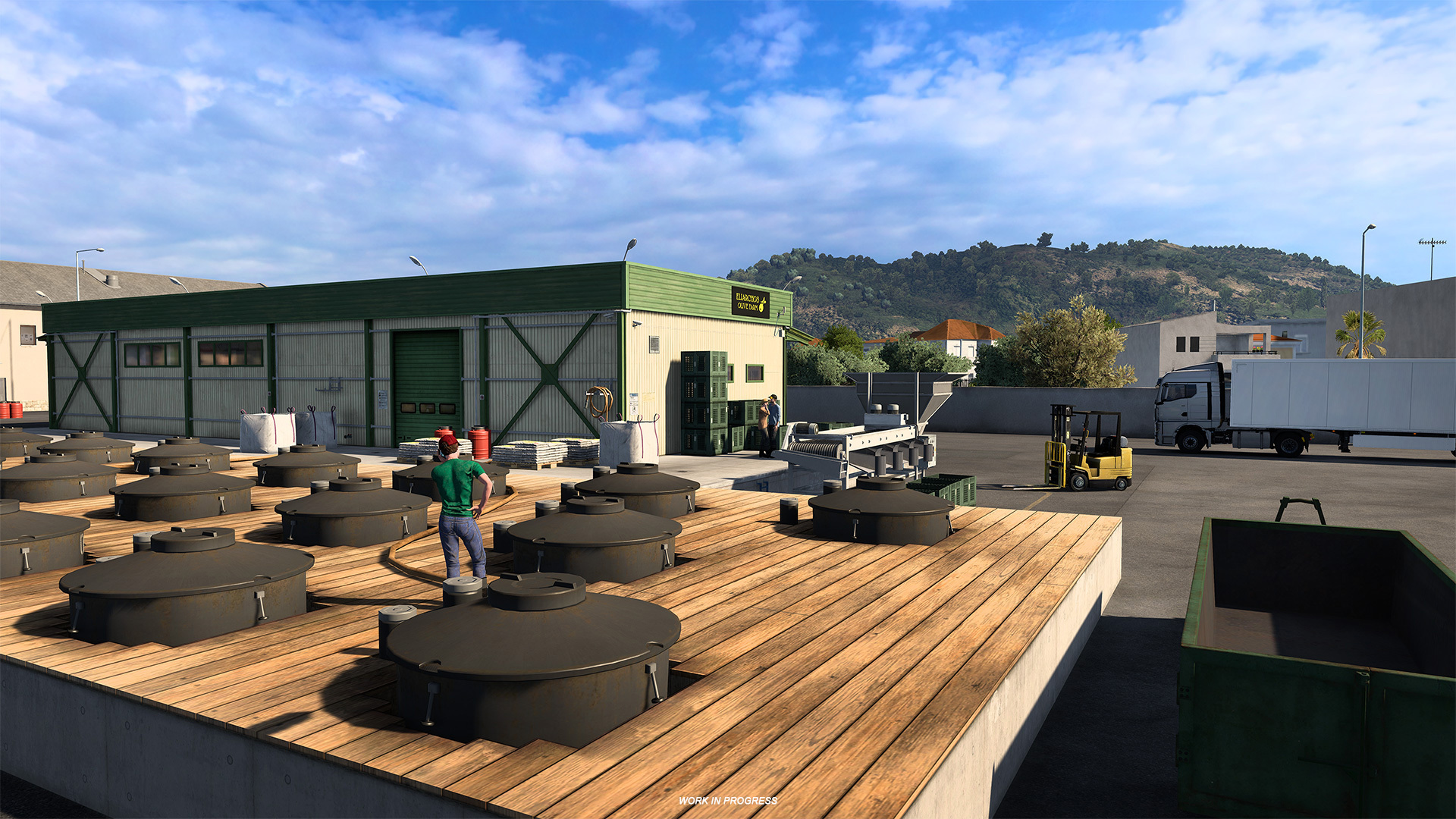 擴展包中將有兩個大理石加工廠,位於食品工廠之上,這也將在其他即將推出的 DLC 中實施。這個小型倉庫設施也是新的,是專門為希臘及其一些島嶼創建的。