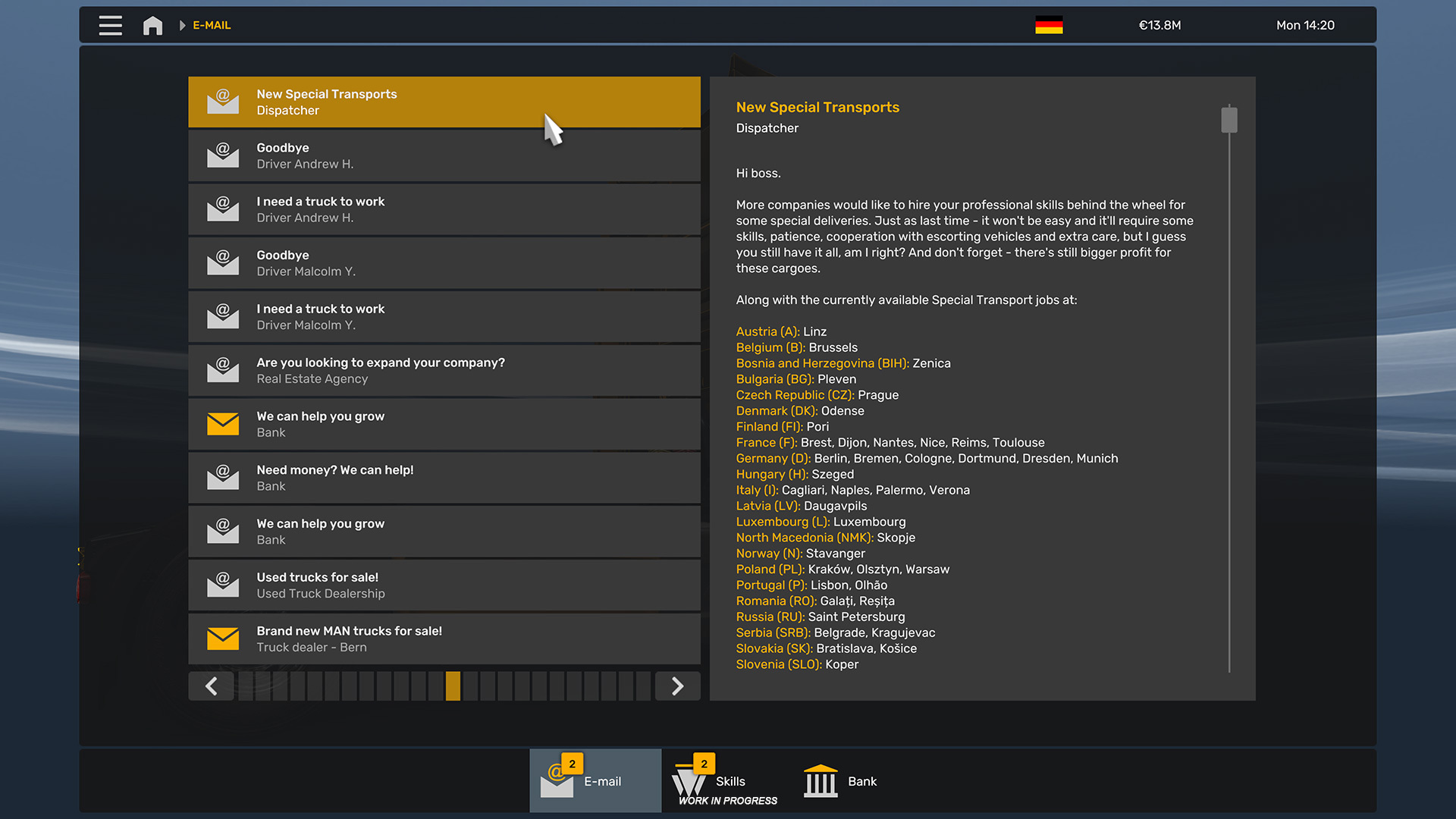 其中包括駕駛學院中的卡車駕駛水平測試、重新設計的郵件菜單以及世界地圖上的新快捷方式,當您按“F”時,世界地圖上的新快捷方式會將其集中在您的卡車上。