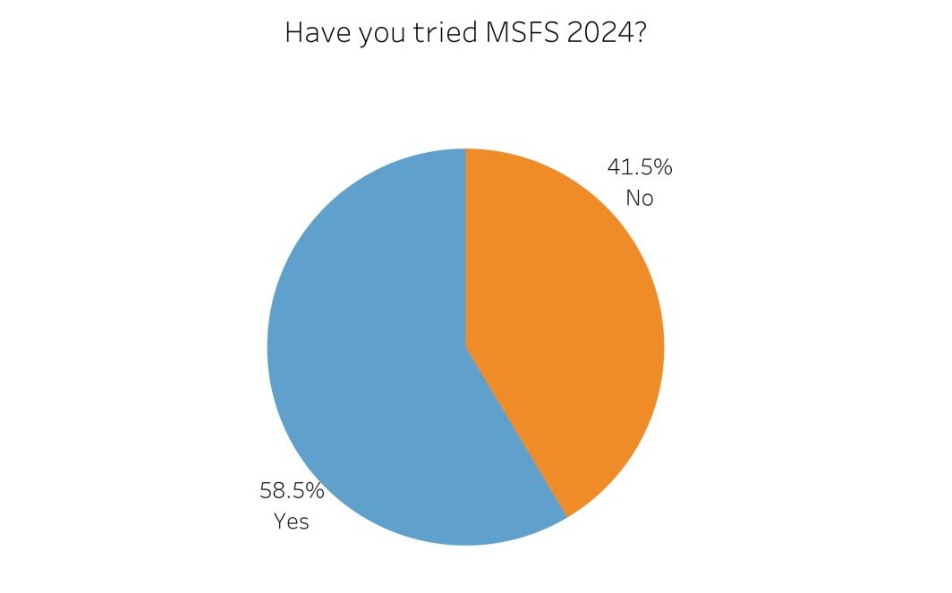 在進行調查的那一刻(在3月7日至3月17日之間,這意味著數據至少一個月大)41.5%的受訪者仍未嘗試MSFS 2004。