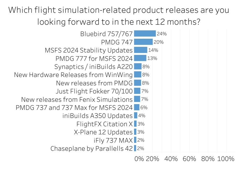 藍鳥模擬的757和767被選為未來12個月中最受期待的產品。