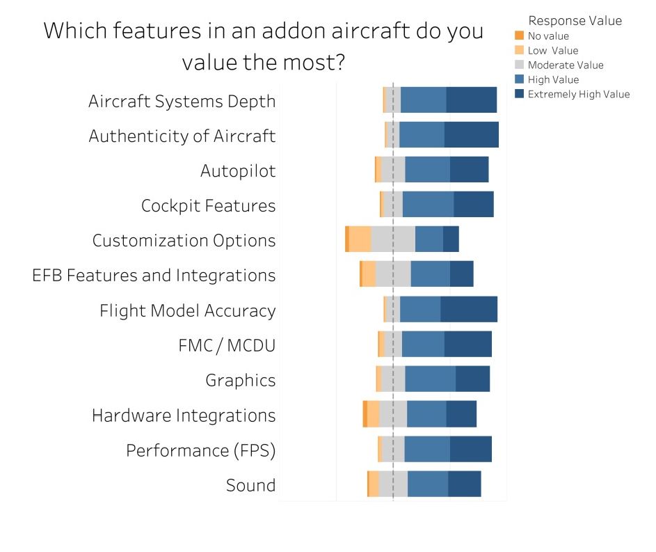 有趣的數據顯示,用戶在附加飛機中欣賞的是,最高的系統深度,真實性和飛行模型精度。