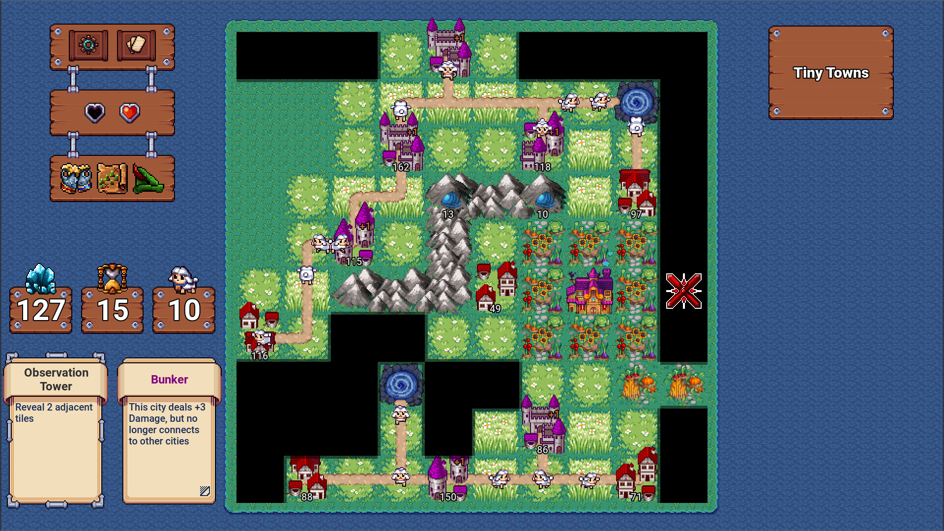 從附帶的屏幕截圖中可以看到,遊戲發生在模糊的網格上,您必須一次將戰爭霧留下。揭示瓷磚會打開您需要做事的資源(通常是綿羊),例如在城市之間建造道路。