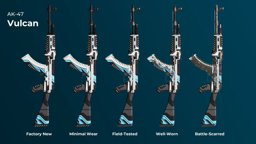 每個CS2皮膚也有一個“浮動值”- 確定其0和1之間的隱藏數字磨損水平(狀況)。基於浮點的五個條件是: