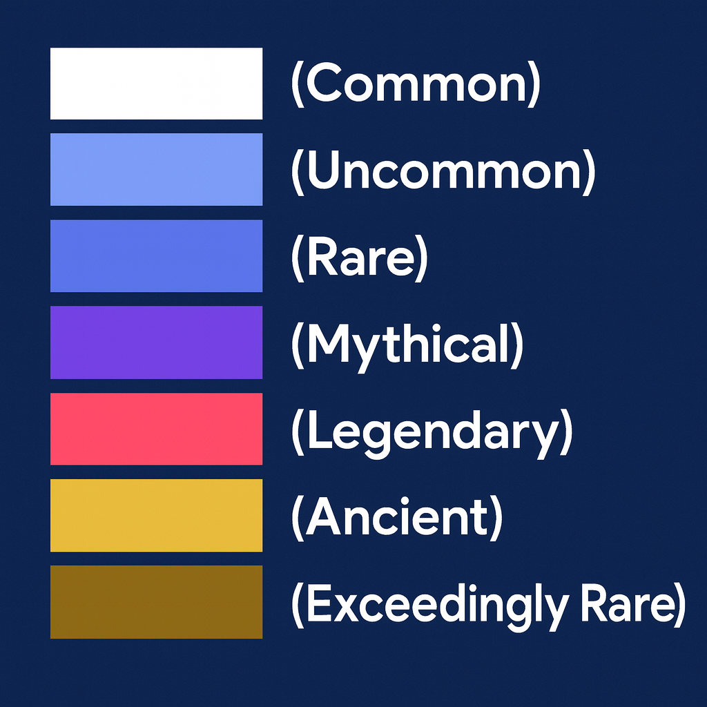 - 極為罕見(黃金)- 罕見的特殊物品,例如刀或手套
