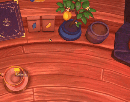 另一個小但令人滿意的細節是挑選食材。開發者指出,有些成分必須種植和收穫。他們使用的例子是一棵可愛的小檸檬樹,它坐落在釀造台上。