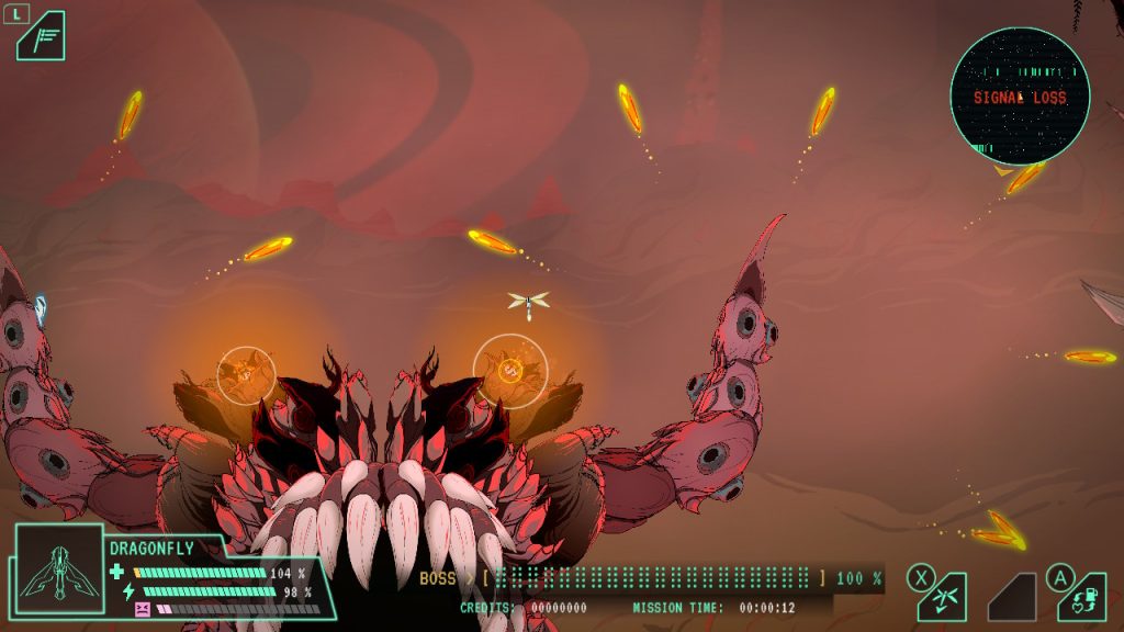 像這樣的科幻冒險一樣,有幾件事阻止了它。我已經在某種程度上談論過的是遊戲的挑戰,以及常常出乎意料的困難。但是,也許我最大的抱怨是,從背景開始很難說出階段的幾何形狀。這在較早的任務中並不是一個大問題,但是在比賽后期,我經常偶然地將蜻蜓撞到了東西上,尤其是在最後一個星球上,這也充滿了恐怖的怪物。