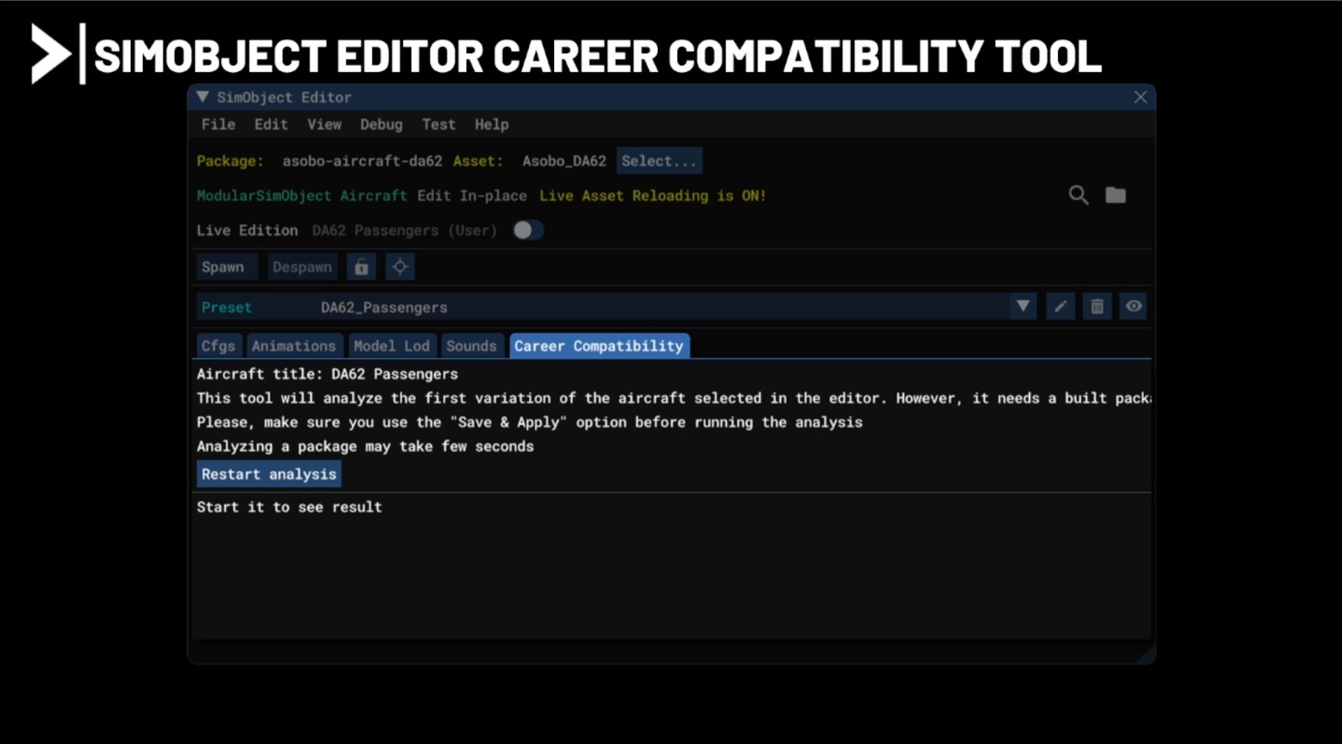 下面,您可以看到 SDK 文檔和工具的更新,這些文檔和工具旨在幫助開發人員將飛機添加到職業模式中。新工具是職業兼容性工具和職業工具。