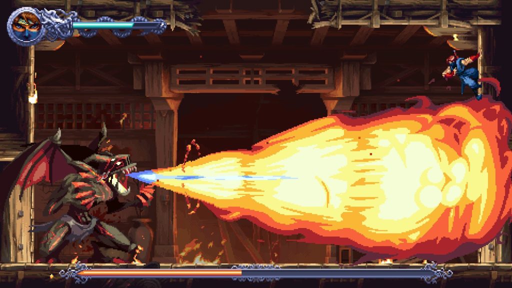 他會來回猛衝,傳播火焰並召喚骷髏頭惡魔,我和他戰鬥時很開心。另一場 Boss 戰是在教程部分對陣 Ryu,雖然理論上你可以擊敗他,但他確實踢了我的屁股。
