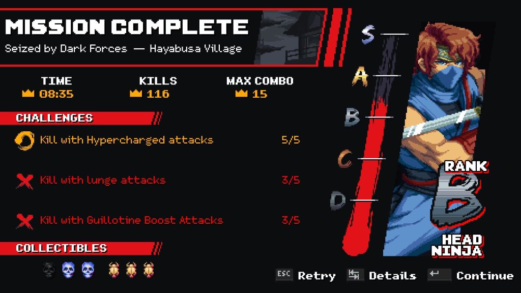 第一級有一個很長的教程,您可以在其中學習基礎知識。即使您以前玩過《忍者龍劍傳》,我敢打賭,由於 The Game Kitchen 的專注工作,還有很多新領域需要探索。雖然你可以瘋狂地攀爬牆壁,並且可以奔跑、跳躍、閃避和向前猛衝,但這種體驗的關鍵是一種叫做斷頭台提升的東西。