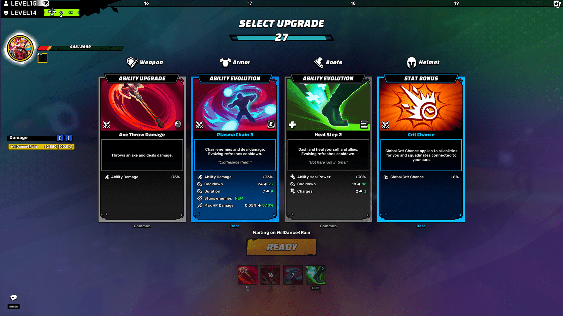 每個盔甲都有自己的卡片,然後用於在運行中確定您的升級選項。一切都有升級,包括對能力的某些方面的重大改進,例如冷卻時間或傷害輸出,或者更一般的進化,這些進化有利於一系列因素,但程度較小。