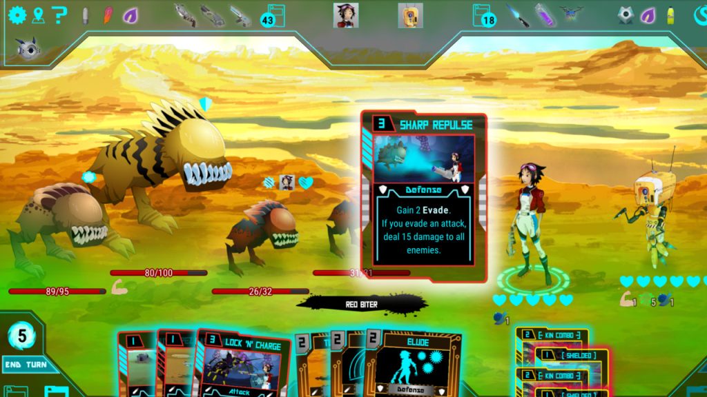 您在外星星球上墜毀,需要在與危險生物作鬥爭的同時清除物資。儘管您當然有代表動作的卡片牌,但它在使用有限的卡與沒有的卡片之間分配。前者的好處是,如果您在用完用完之前就使用它們(稱為指控),那麼它們會以字面的轟動,造成巨大的傷害。該遊戲還可以使您一次控制兩個玩家,但我承認無法生存的時間足夠長,無法看到該功能。