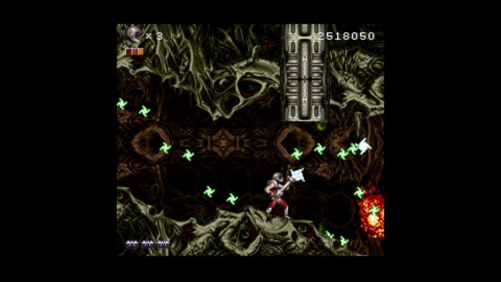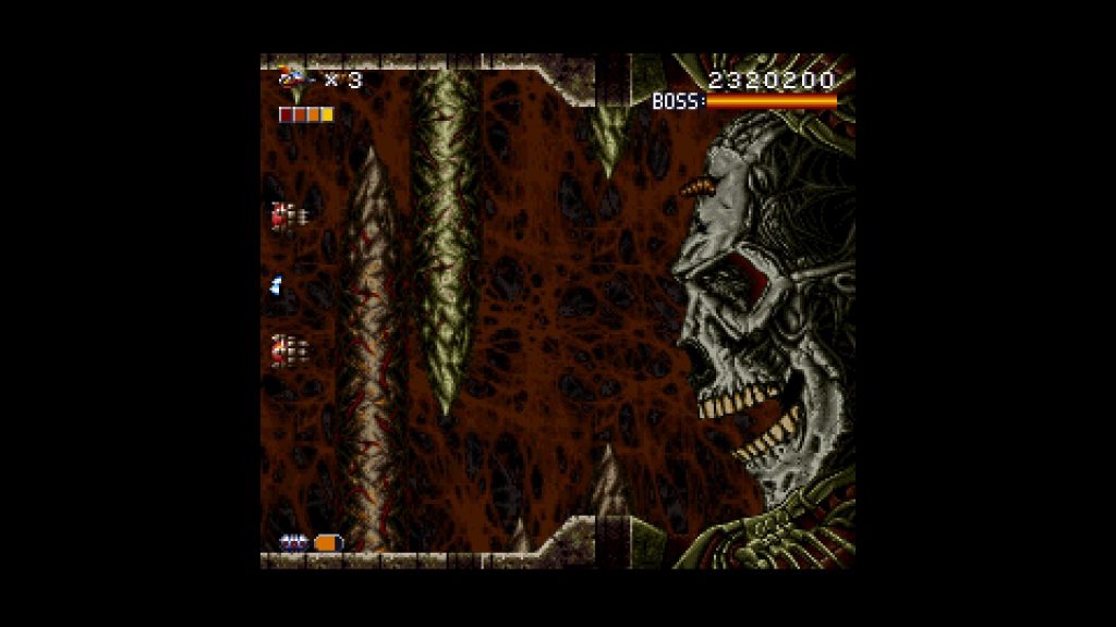 然後我進入了第五階段,坦率地說,這代表了難度的瘋狂跳躍。它不僅讓你在幾個點上回溯,而且還有三場巨大而痛苦的頭目戰。而且因為這是一款典型的具有挑戰性的日本遊戲,所以檢查點為零,這就是我喜歡使用“保存狀態”的原因。我也需要它們,因為比賽的最後三個階段幾乎讓我放棄。尤其是當我必須在一個巨大的 Shmup 關卡中與五個不同的 Boss 進行戰鬥時。至於最後的boss戰,我只用了幾條命就勉強完成了與惡魔立方體的戰鬥。