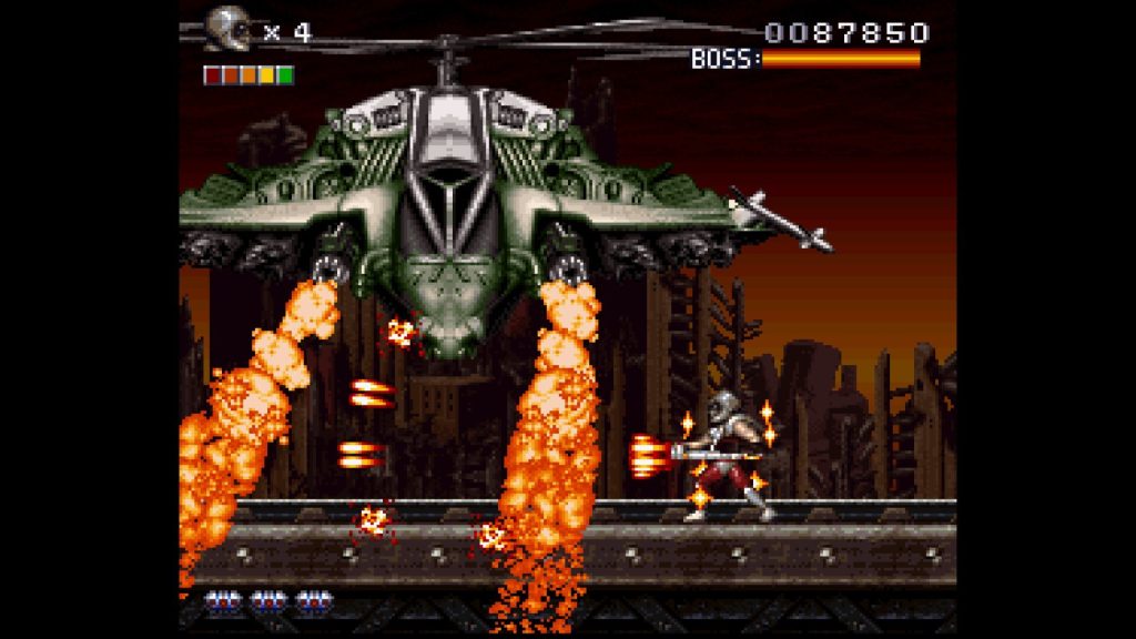 從視覺上看,Rendering Ranger: R² [Rewind] 是一個仍然保持良好狀態的集合。這裡有絢麗的色彩和多種多樣的敵人。另外,Boss 本身是從預渲染 3D 模型轉換而來的精靈,這允許大量的動態運動。雖然早期的遊戲充滿了機器人和致命的船隻,但我真的很欣賞更惡魔和令人毛骨悚然的敵人。在音樂上,它也非常出色,振奮人心且充滿活力的曲調與遊戲的狂熱能量相匹配。