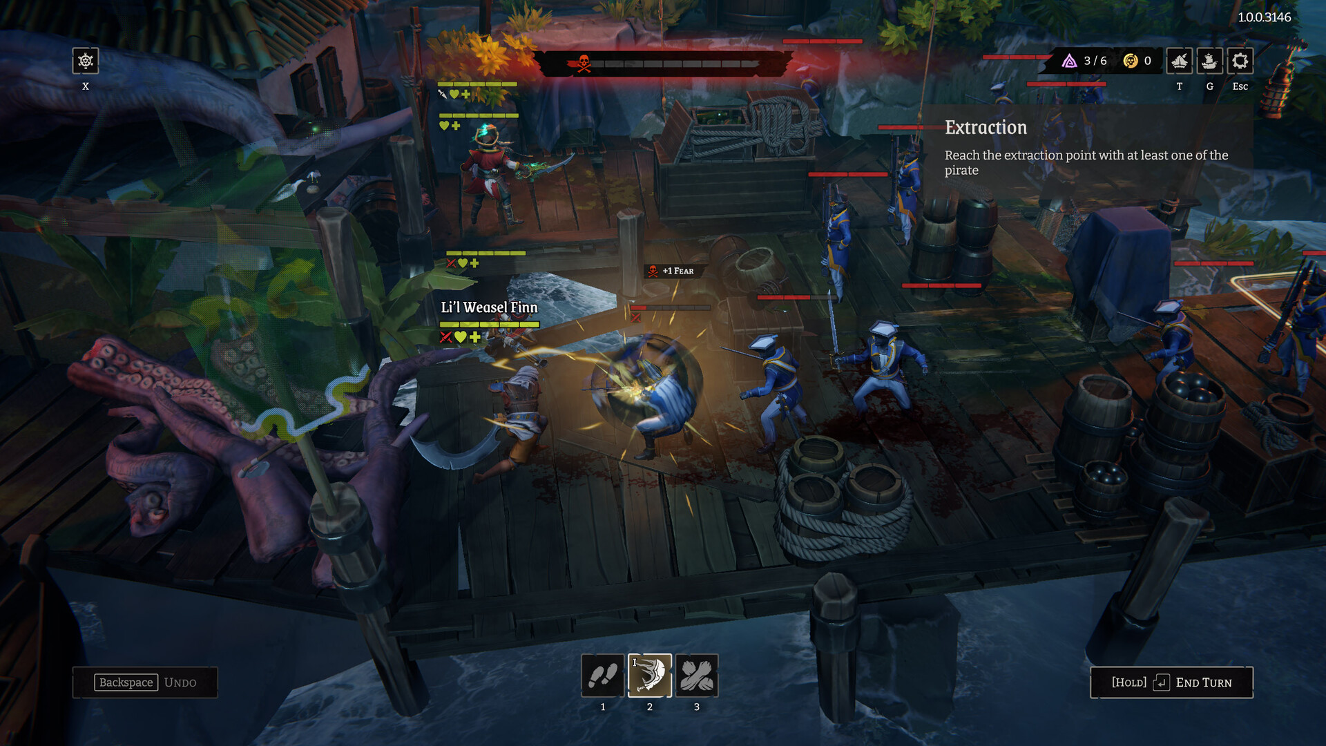 回合製戰鬥非常有趣。當你的單位利用攻擊來推動敵人時,定位是關鍵。有多種方法可以利用環境來為你帶來好處,從將敵人推下船到在繩子上盪來走去很遠的距離。