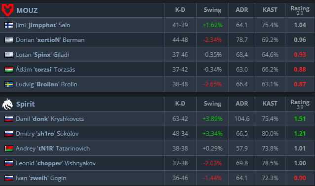 - 他的影響力超出了原始數字:憑藉多次高影響力的多重殺戮、關鍵回合和持續的壓力,唐克多次扭轉了勢頭精神的青睞——尤其是在 Mirage 和 Overpass 上。