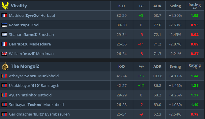 之前的遭遇和玩家統計 – TheMongolZ vs Vitality