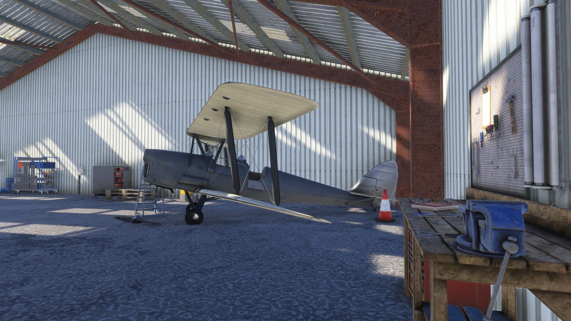 - 詳細的控制室和機庫內部,帶有動畫機庫門,可在夜間關閉(使用出租車燈手動打開)