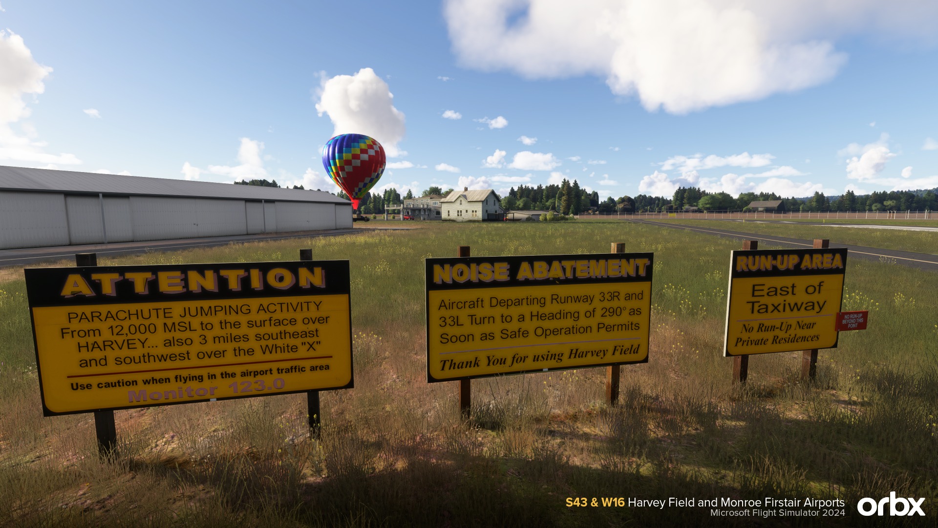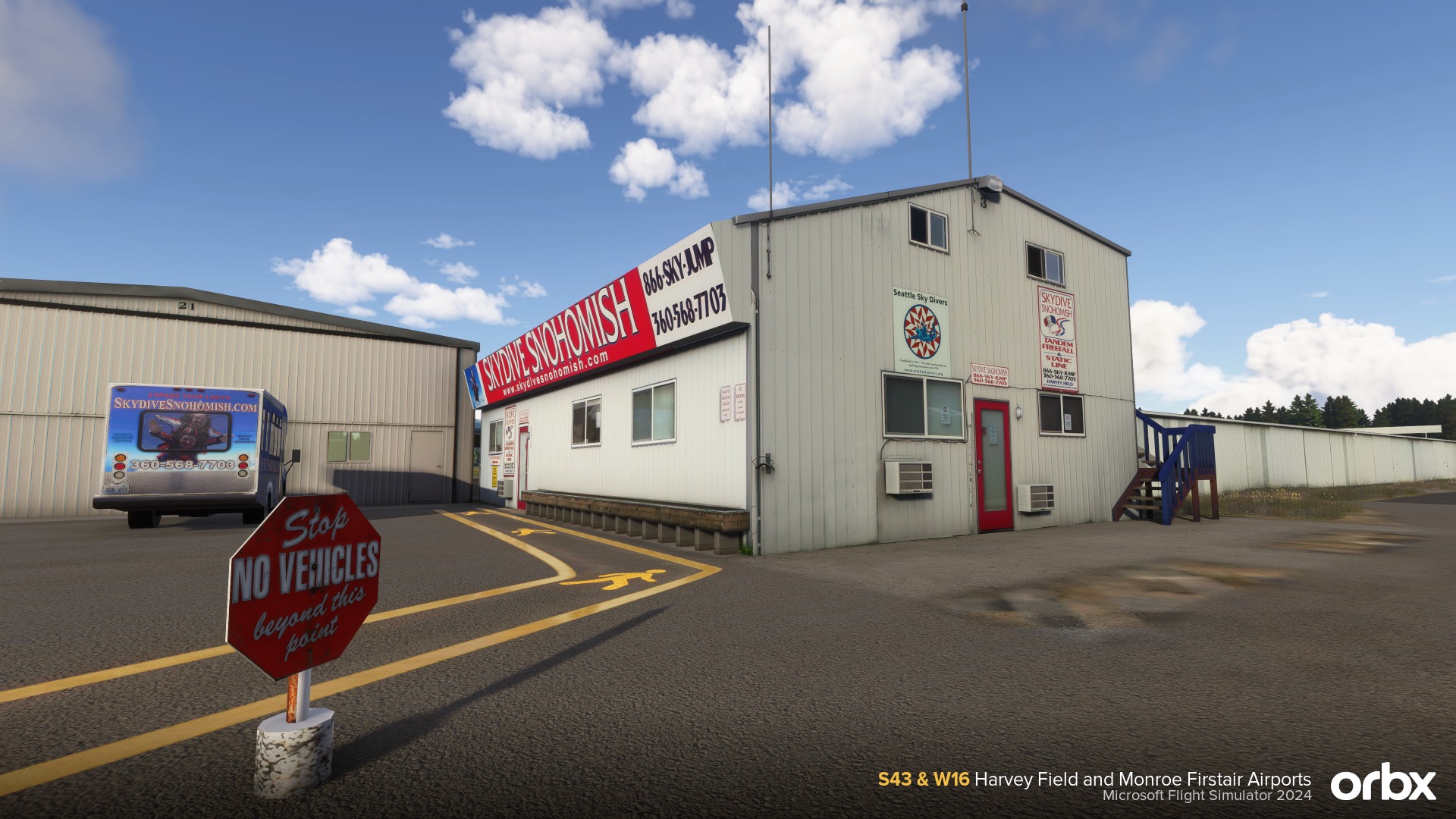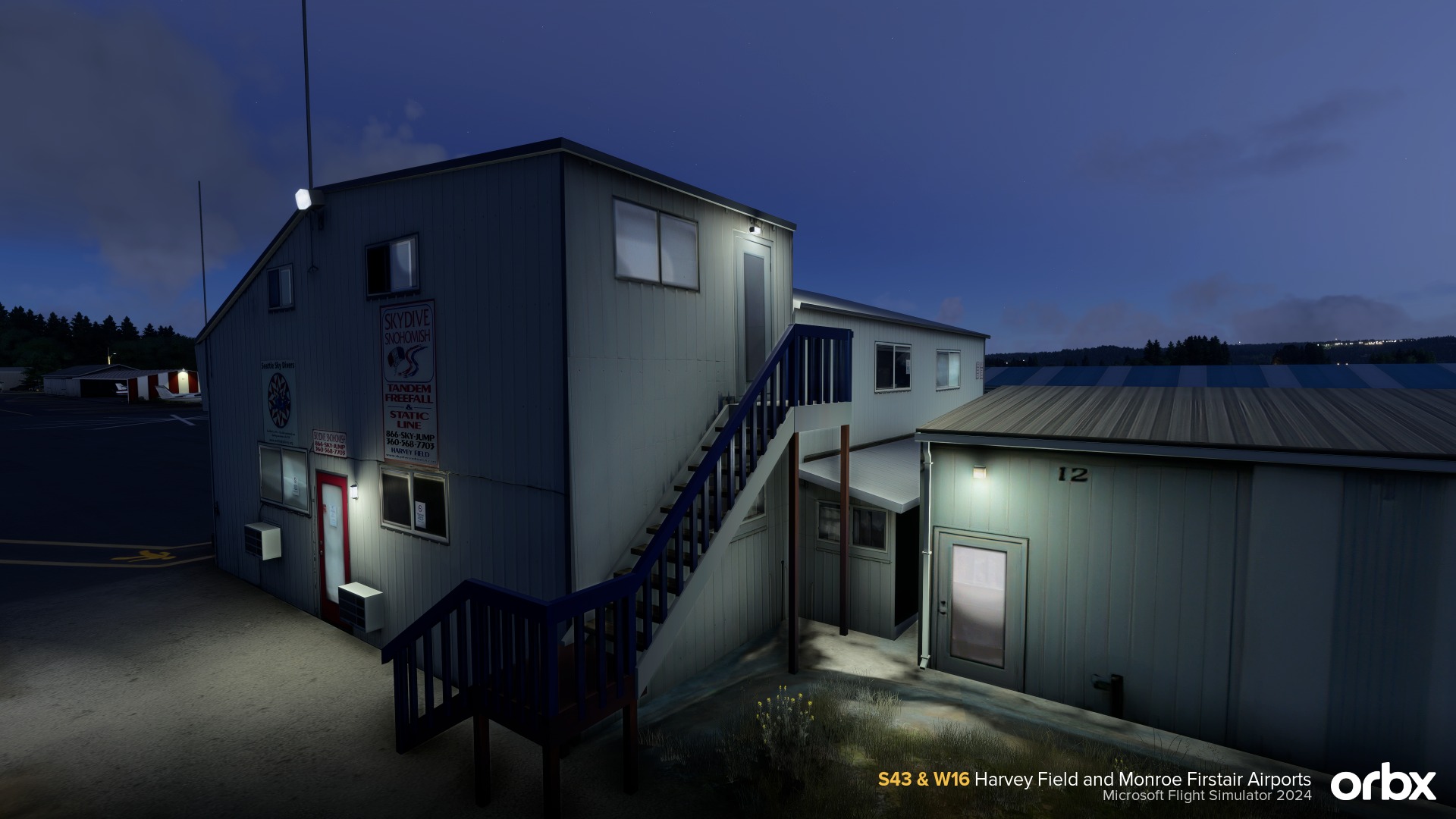 Orbx在美國西北太平洋,哈維球場(S43)和門羅第一乘(W16)機場發布了另一對通用航空機場。