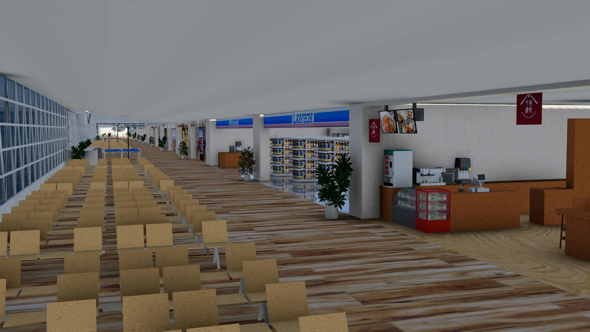 我們還注意到,開發商決定包括部分內部空間,特別是從停機坪可以看到的登機等候區。航空公司工作人員準確地穿著沖繩 kariyushi 襯衫。
