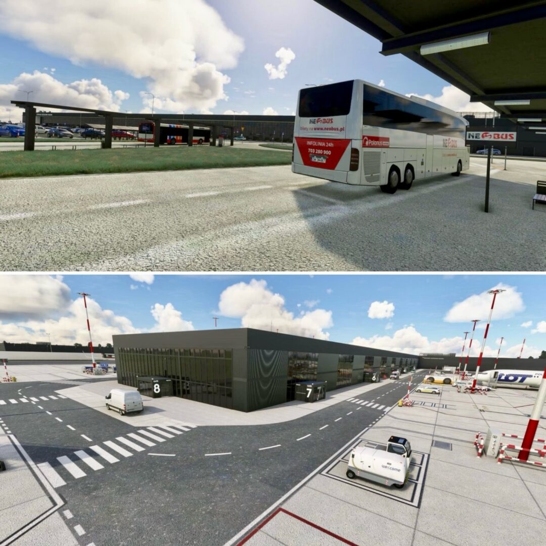 MSFS 的卡托維茲、甚切青-戈萊紐夫和華沙拉多姆機場獲得新屏幕截圖