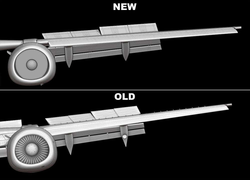 新的機翼模型還遠未完成,但看起來已經相當令人印象深刻了。我們確保了正確的機翼輪廓、適當的控制面比例和建模的複雜細節,所有這些都使新模型真正逼真。